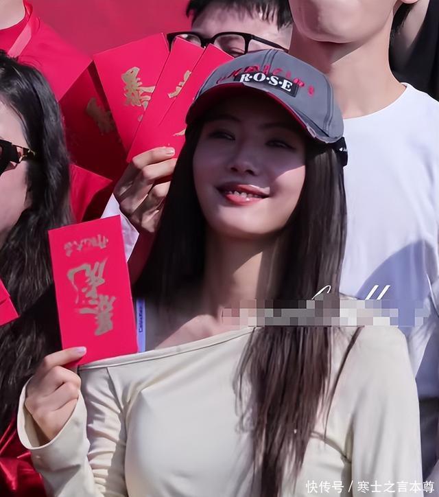 蔡文静的脸是有些稍显“皮笑肉不笑”的既视感,可有的女明星就有些显老了。 马苏脸垮。 穿浅灰色卫衣,手里举着印着“暴虎”的红包,笑得挺开心,但脸是真拉垮—— 法令纹深到能夹死蚊子,苹果肌往下掉,下颌线也模糊了,跟她以前走红毯的样子差了不止一点。